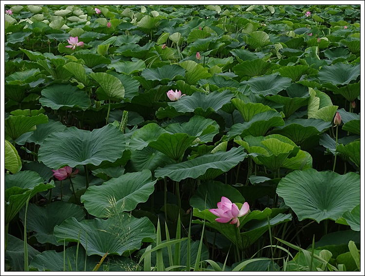 넓은 면적 가운데 3만여 평에 홍련이 군락을 이루고 있으며, 7월 하순~8월말께 홍련이 화사한 꽃망울을 활짝 터뜨린다.