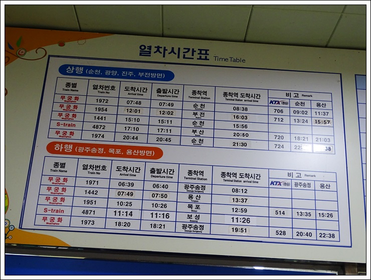 득량역 열차시간표.