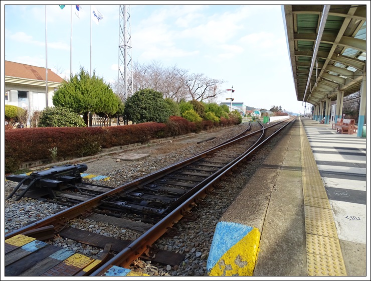 대합실을 빠져나와 플랫홈으로 나서면 철도선로 변환기가 반긴다.