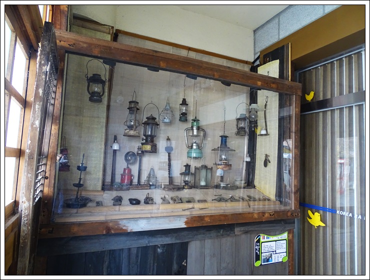 대합실 입구 우측에 옛날에 사용했던 각종 등기구가 진열되어 있다.