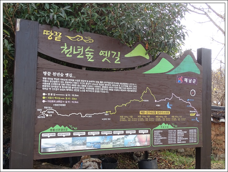 탑동마을에 세워진 땅끝 천년숲 옛길 이정표.
