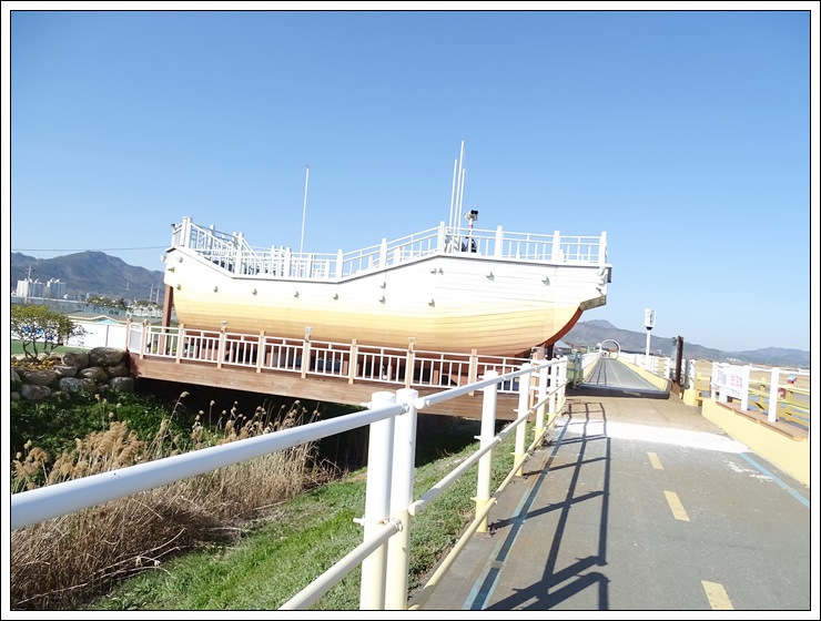 남포호 전망대를 옆에서 보면 선박모형이다.