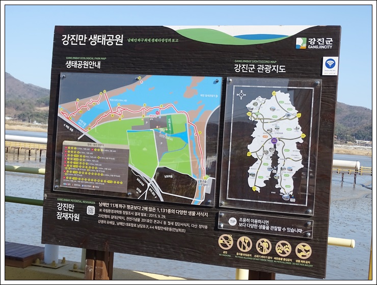강진만 생태공원의 이모저모를 알리는 안내판.