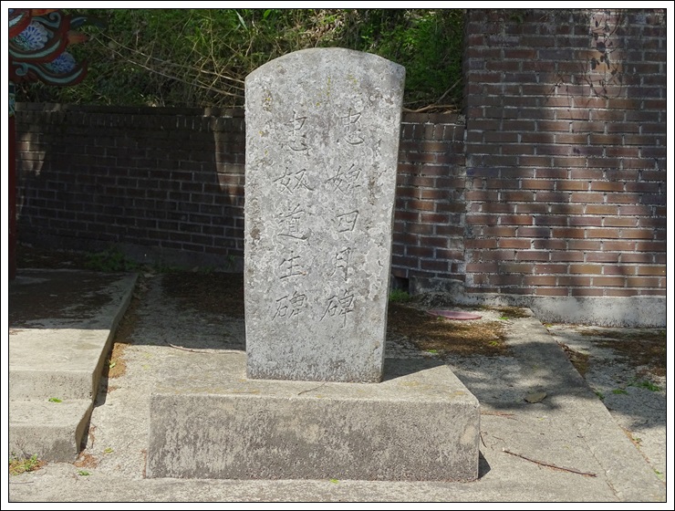 신천강씨 열녀각 앞에 충노 도생비와 충비 사월비가 비석 하나에 세워져 있다.