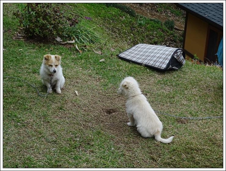 예쁜 강아지 두마리가 꼬리를 흔들며 방문객을 반긴다.