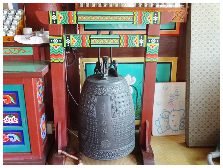 범종각을 대신한 극락전에 안치한 호산 망월사라고 새겨진 종.