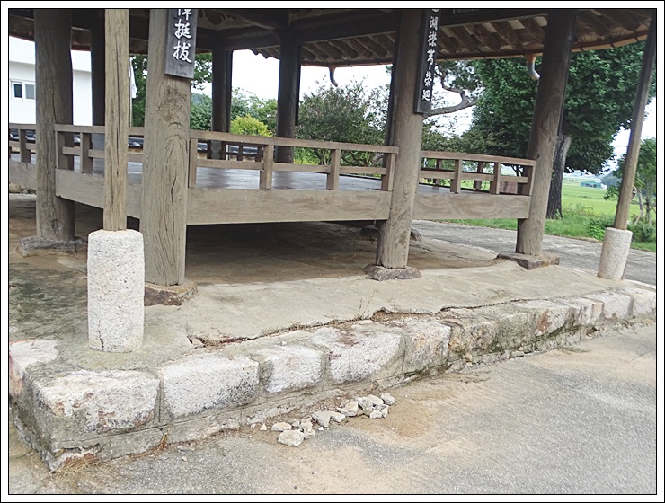기단은 다듬돌 두벌대 쌓기로 되어 있고 초석은 막돌 초석이다. 기둥은 원통형 두리기둥이며 기둥 위로는 주두(柱頭) 없이 보와 도리로만 결구되어 있다.
