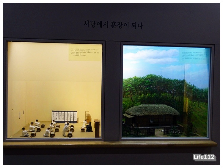 만해 생가와 교육장 모형물.
