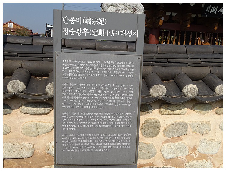 유허비각 앞에 세워진 '단종비 정순왕후 태생지' 안내판에는