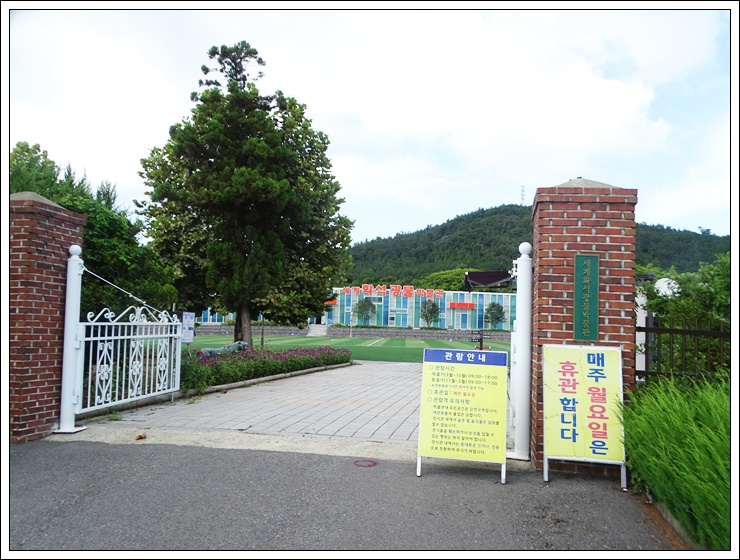 박물관 전경과 안내이정표.
