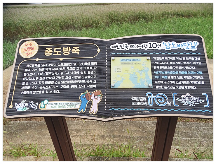천상의 갯벌이 숨 쉬는 중도방죽. 표시판.