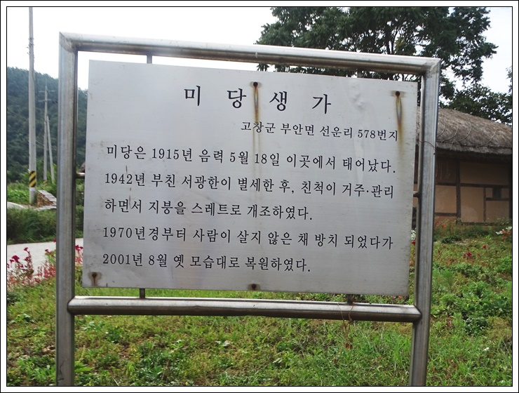 서정주(徐廷柱, 1915~2000)선생은 전라북도 고창 출생, 아호는 미당(未堂) 1915년 5월 18일(음력) 이곳에서 태어나 9살 때까지 살았다.
