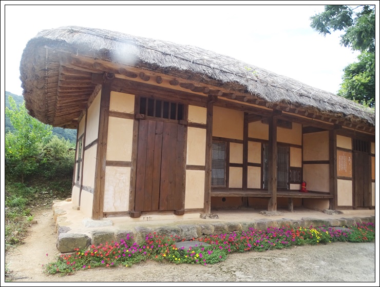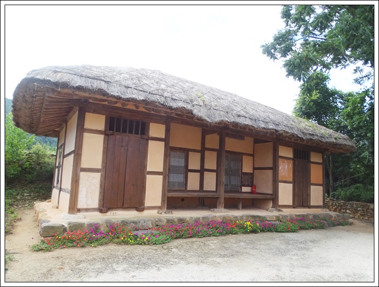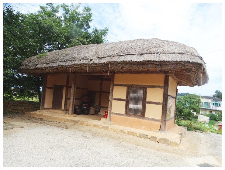 *미당 생가는 본채와 아랫채 두 동을 전형적인 시골집의 초가지붕으로 복원해 두었다.