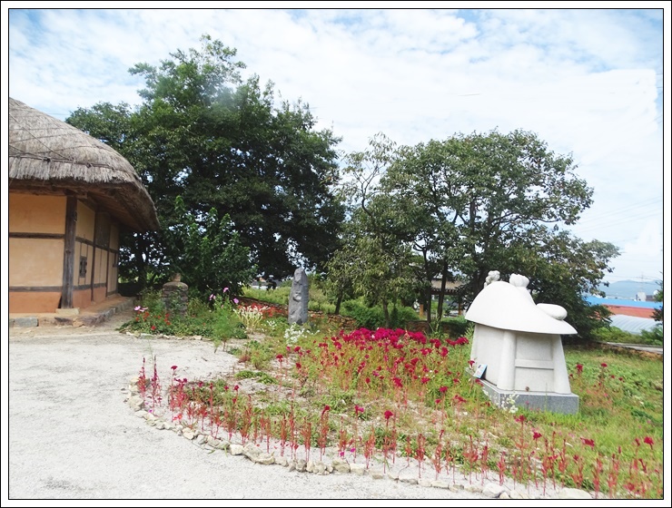 생가 입구 꽃밭.