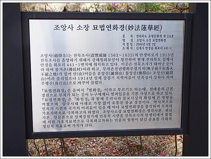 조앙사 소장 묘법연화경 안내판.