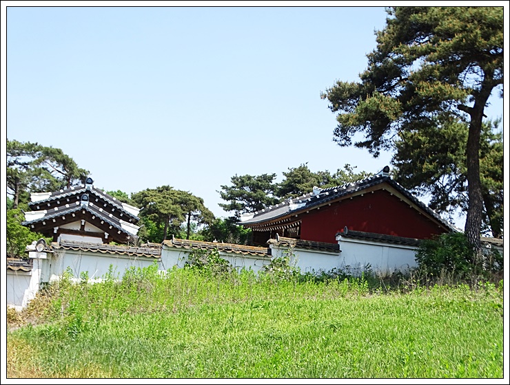 담장 너머에서 바라본 삼현서원.