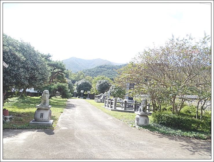 입구 양쪽으로 사자상이 세워져 있다.