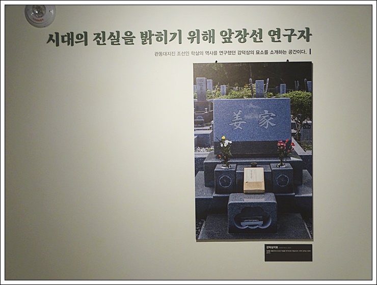 관동대지진 조선인 학살의 역사를 연구했던 강덕상의 묘소를 소개하는 공간이다.