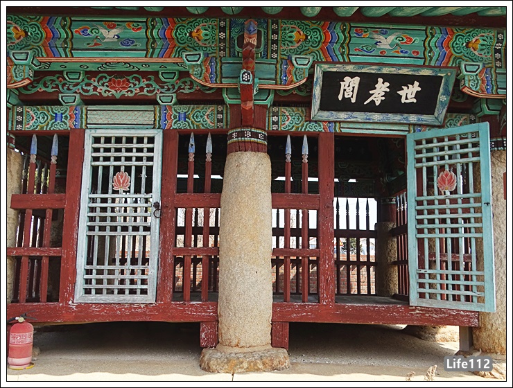 출입문이 2개로 되어 있으며, 우측 출입문 위에는 ‘세효려’라는 현판이 걸려 있다.