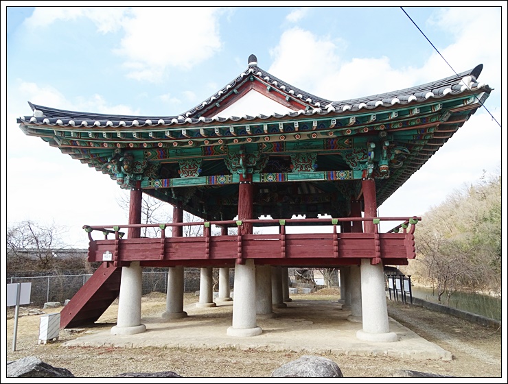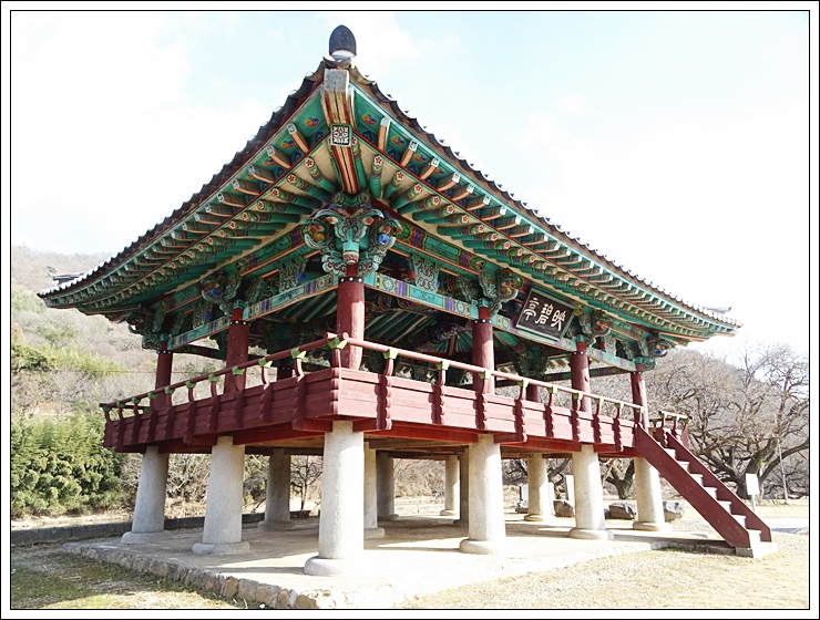 둥근기둥(두리기둥)을 세워 마루를 깔았고 마루의 사방에는 조각한 난간을 돌려 장식하였다.